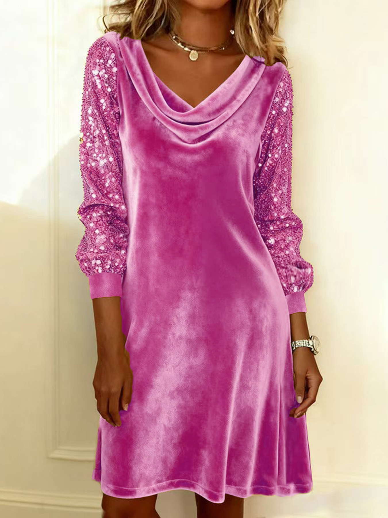 Style: Party styleNeckline: Round neckType: DressSleeve type: Long sleevesMaterial: VelvetFabric stretch: None